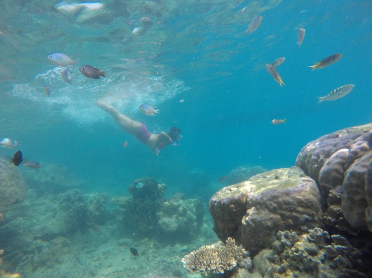 Dari Pulau Tongkeng, kami beralih ke Pulau Bintang. Snorkeling disini, Ikannya lebih rame dan sibuk, namun kelihatan banget lautnya lebih dalam . Hanya kok aku lebih tenang aja bawaannya main disini. Haka lebih enjoy main sama Ikan ikan. Kalau lihat videonya itu Haka bukan bawa sampah ya, tapi bungkus roti yang isi rotinya dibagikan ke ikan ikan. Aku juga bingung, ikan kok doyan roti ya?